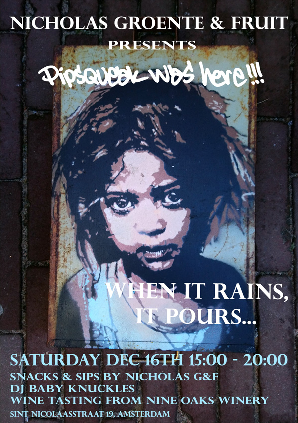 Opening of Our New Solo Expo by @pipsqueakwashere ! On Sat, Dec 16th from 15:00-20:00 We Will Celebrate This Amazing Show and to Showcase These Two Amazing Artists! As Mentioned Dj Baby Knuckles will be Spinning Records, @thesecretgardenamsterdam will be Open with New Evening Lights and We’ve Arranged for Our Dear Friend @anna.addison who will Be Offering Tastings and Explaining her Fantastic Wines from Nine Oaks Winery! So Mark it All Down & Come on Around!